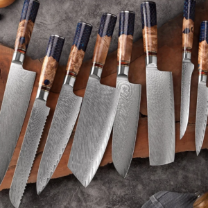 • Factory Wholesale 67 Layers Damascus Steel Japanese Steel Vg10 Handmade Damascus Knife Set Kitchen Knives Chefs Santoku Knives