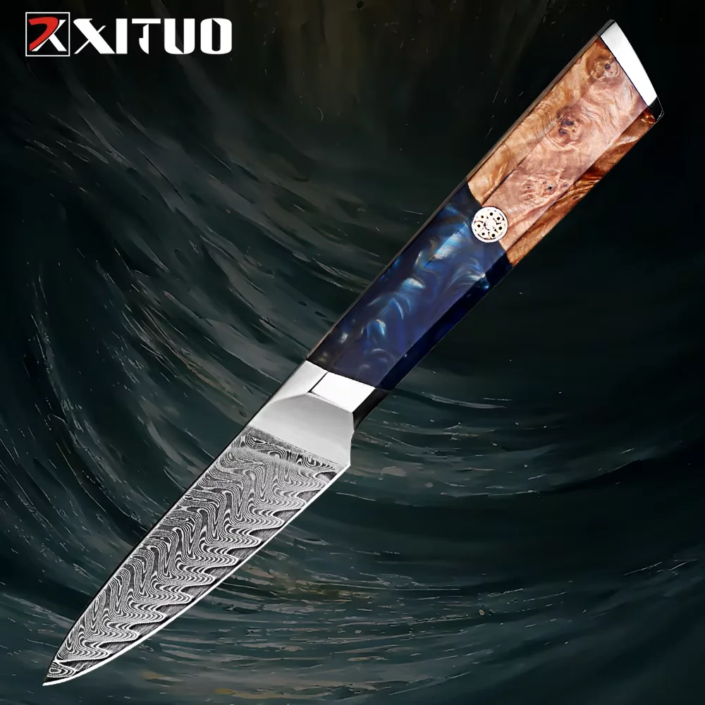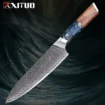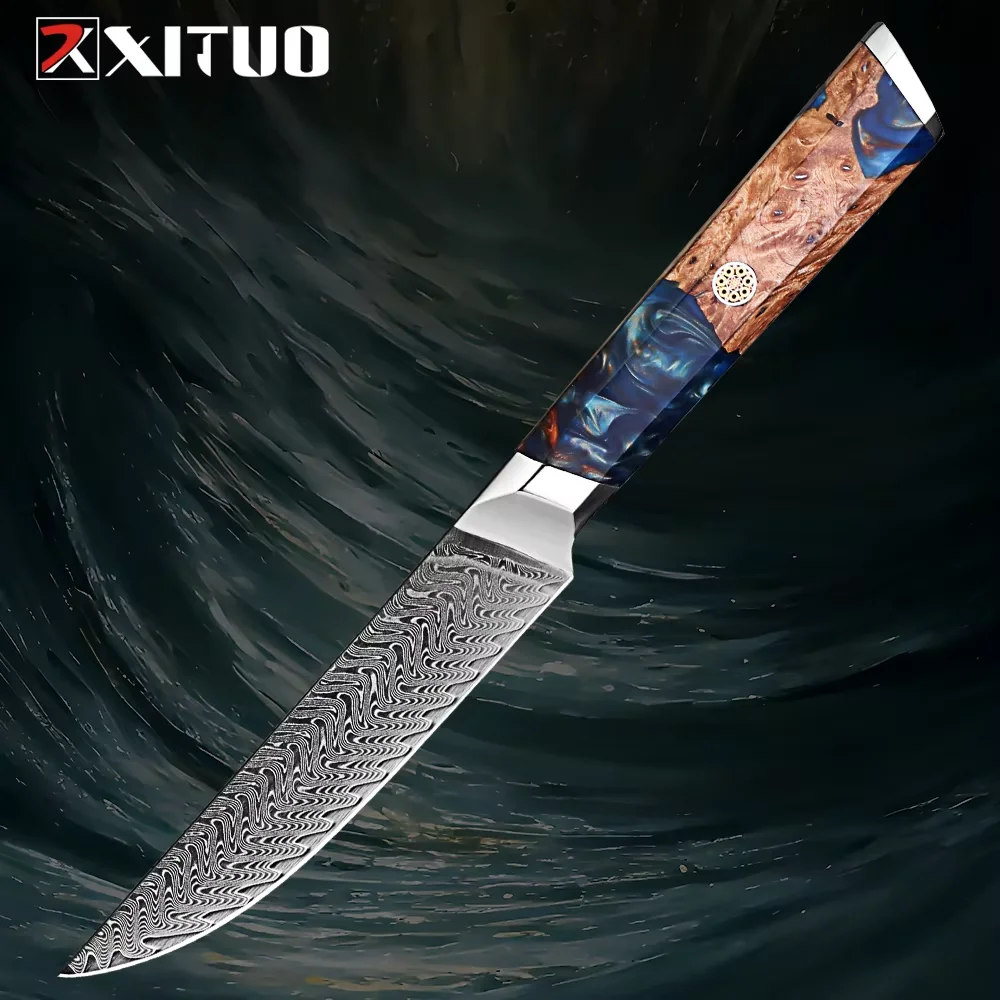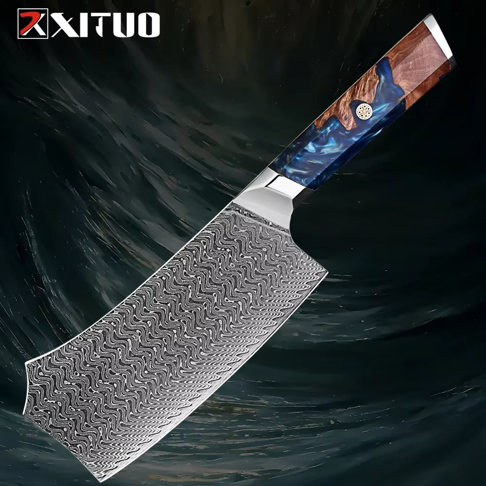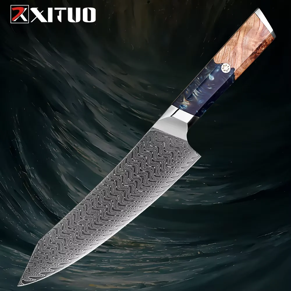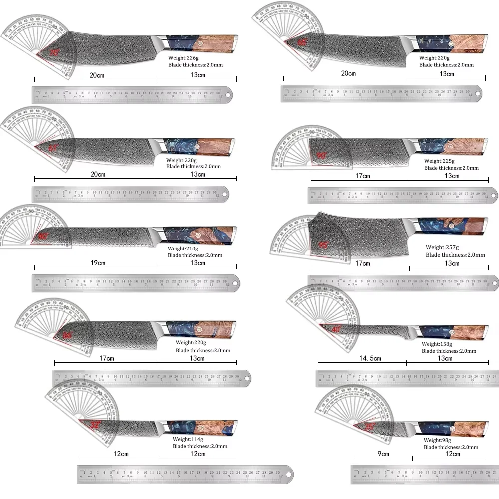 1-9 Pcs Damascus Knife Set Japanese Kitchen Knives VG10 Steel Core Ultra-Sharp Pro Chef Knife Set with Resin & Blue Wood Handles