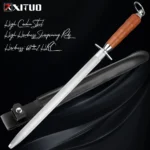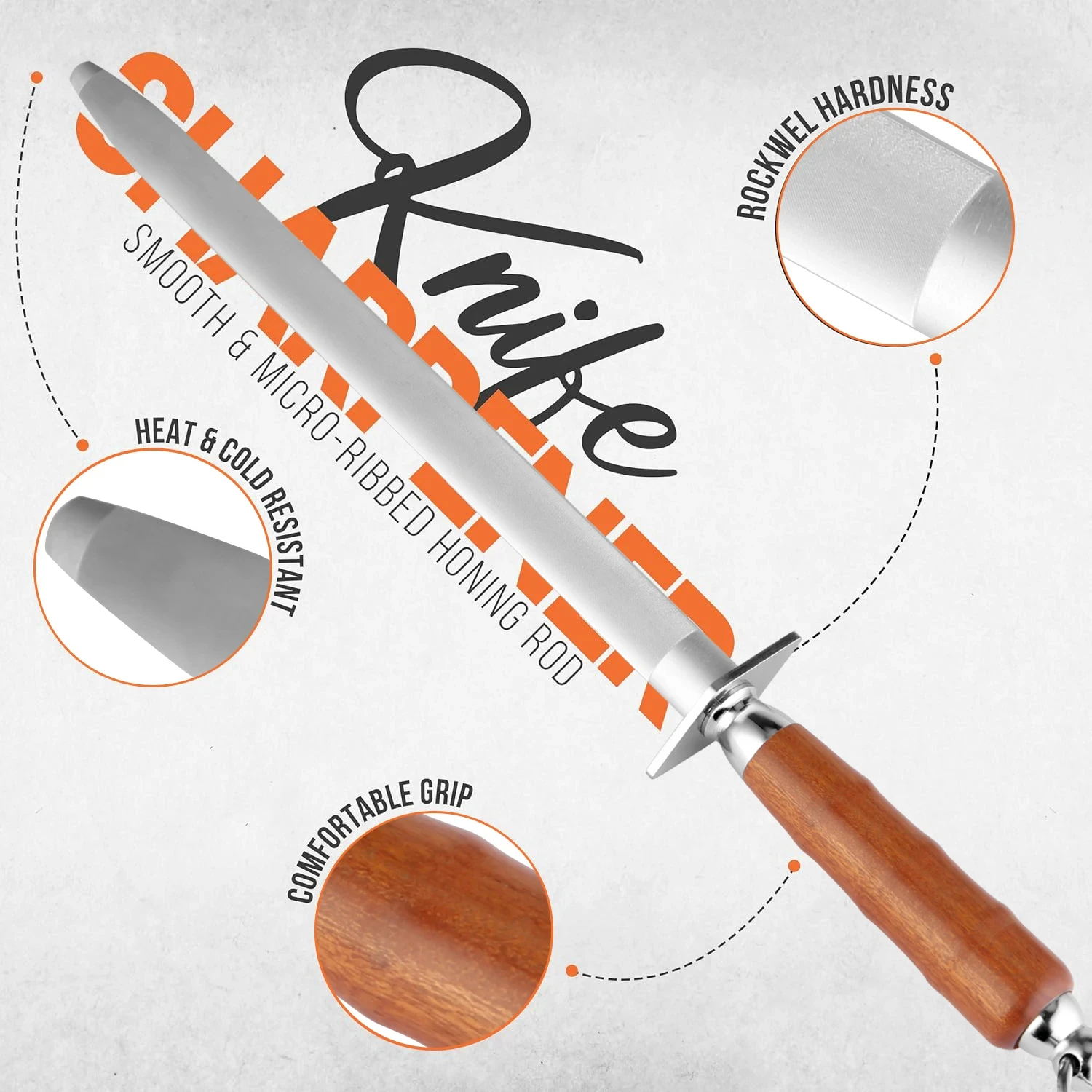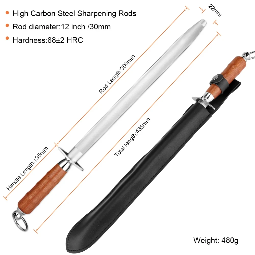 12 Inch Professional Knife Sharpening Rod High Carbon Steel Rod Body Ergonomic Wooden Handle Kitchen Knife Quick Sharpening Tool