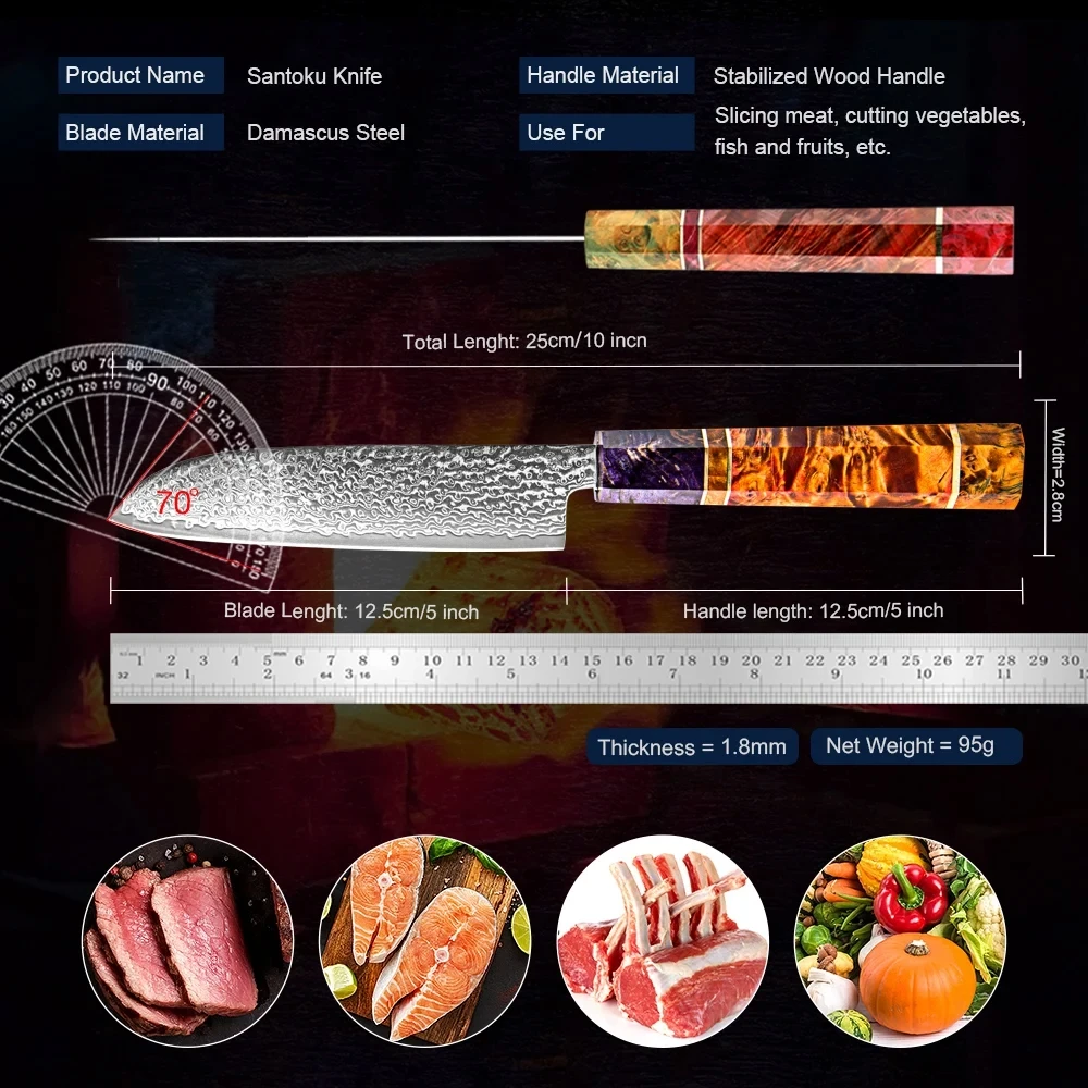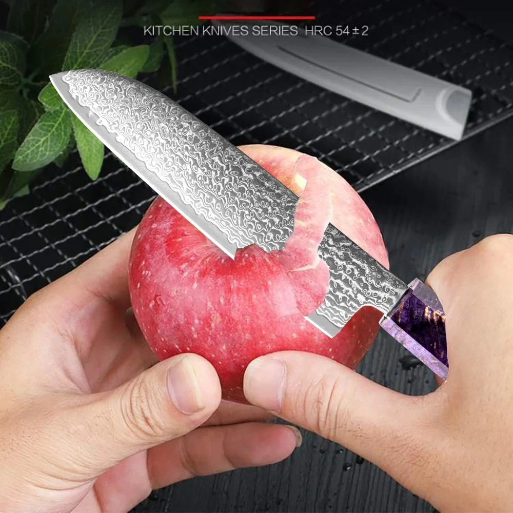 5 Inch Santoku Knife Pro Damascus Steel VG10 Kitchen Knives Sharp Blade Professional Paring Peeling Fruit Knives