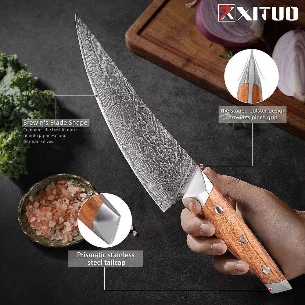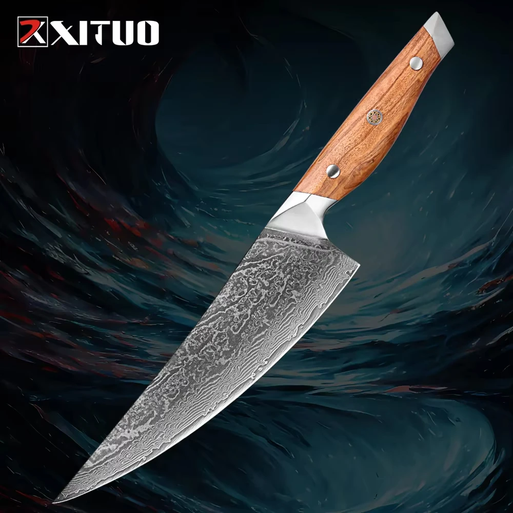 67-Layer Japanese Damascus Steel Kitchen Chef Knife Razor Sharp Santoku Knife Olive Wood Handle Fruit Paring Knife Cooking Tool