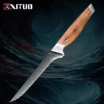 Our factory is a professional knife manufacturer with over ten years of extensive experience. We specialize in producing a wide range of high-quality knives, including Damascus steel knives, hand-forged high-carbon steel knives, and premium stainless steel kitchen knives. Our products incorporate a variety of premium handle materials, such as stabilized wood, resin, ebony, G10, carbon fiber, buffalo horn, and sheep horn, ensuring that each knife is both aesthetically pleasing and highly functional. Additionally, we offer accessories such as leather knife sheaths and nylon sheaths.