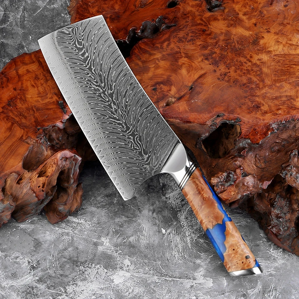 A: We specialize in the production of cost-effective knives, medium and high-end composite steel knives.Such as China 7Cr17Mov stainless steel laser pattern knives, hand-forged knives,Damascus composite steel knives, German steel 1.4116…The handles are made of natural wood such as color wood, G10, Micarta,Pakkawood,rosewood, wenge wood, and olive wood.