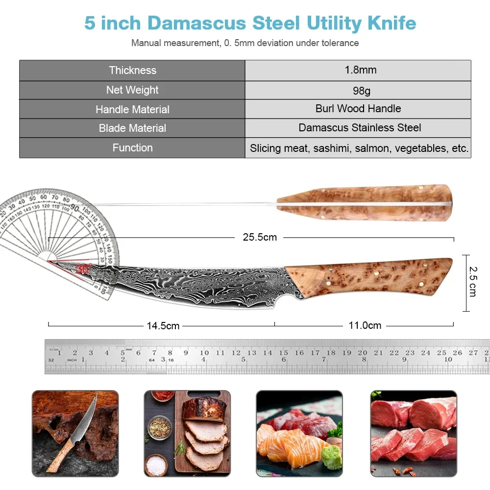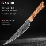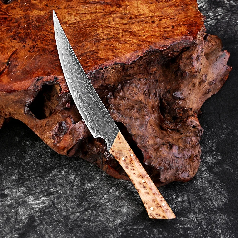 67-Ply Damascus Steel Utility Knife Full Tang Steak Knife Sharp VG10 Steel Core Fruit Peeler Kitchen Cutting Tool Wooden Handle