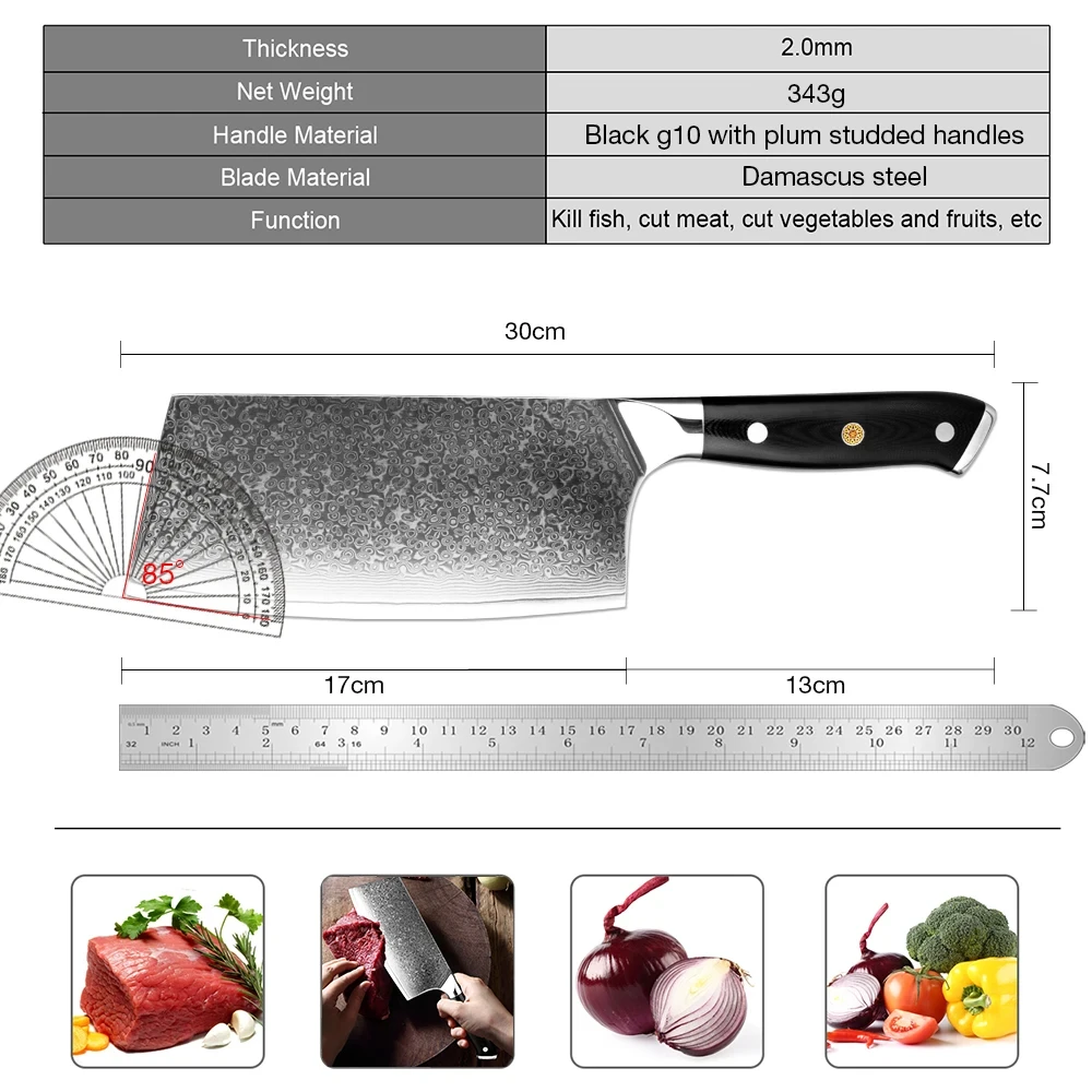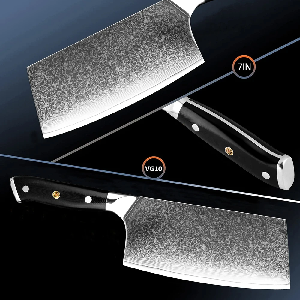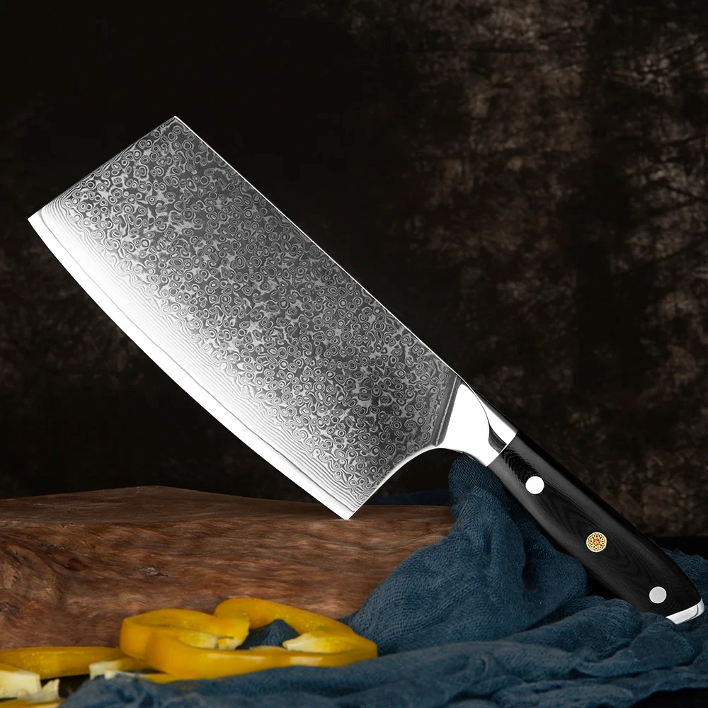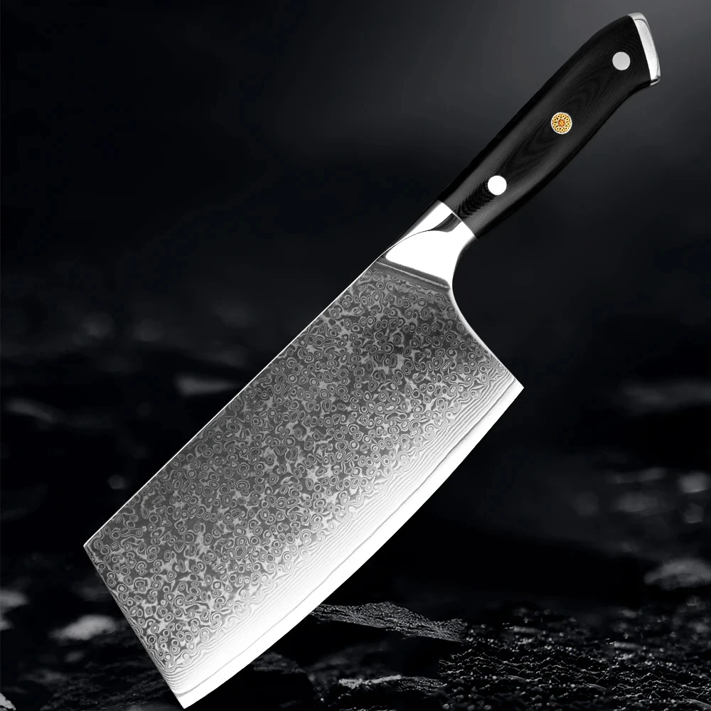 7 Inch Chinese Cleaver Knife 67 Layers Damascus High Carbon Steel Razor Sharp Kitchen Knife Full Tang Black G10 Handle