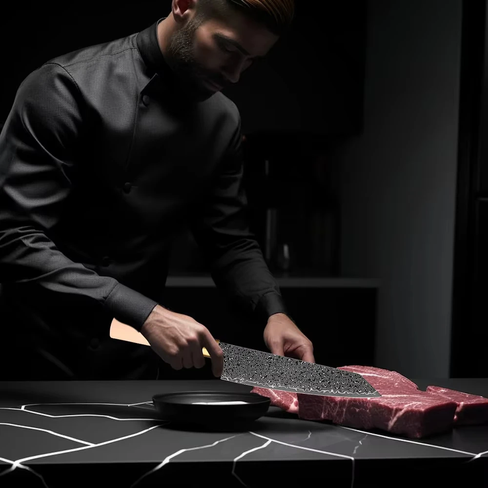 8-inch Kiritssuke Knife Damascus Steel VG10 Black Blade Master Chef’s Knife Hotel Home Kitchen Cutting Tool White Maple Handle