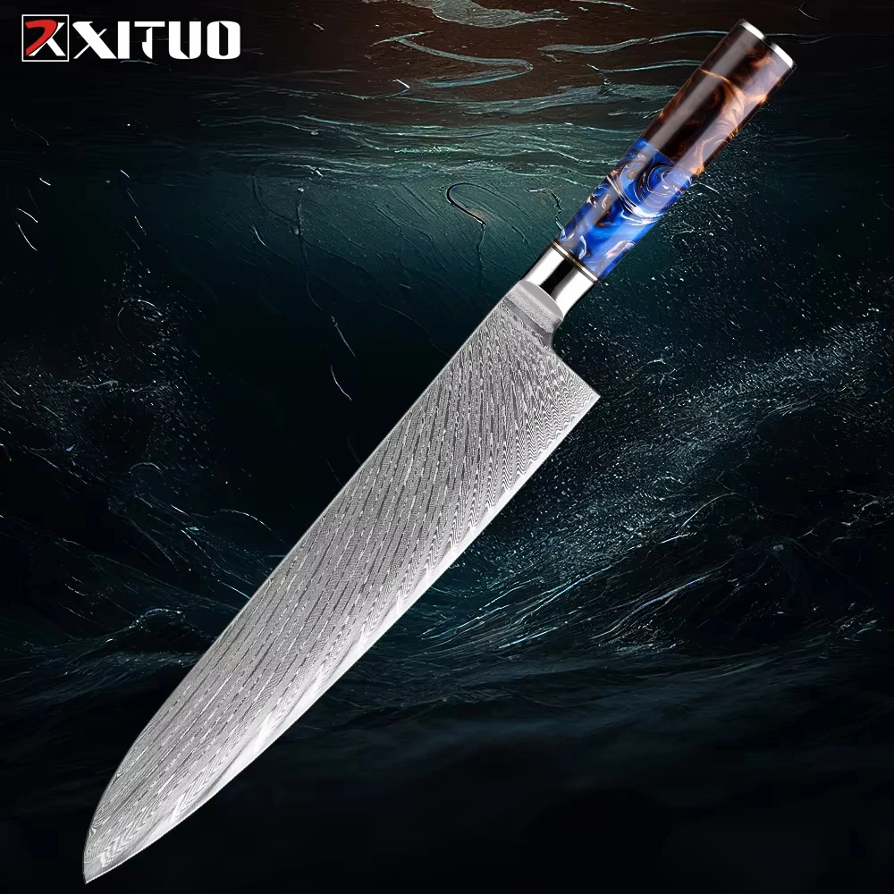 9 Inch Chef’s Knife 67 Layers Damascus Steel Kiritsuke Knife sharp Western Chef’s Knife Ergonomic Handle Cooking Cutting Tool