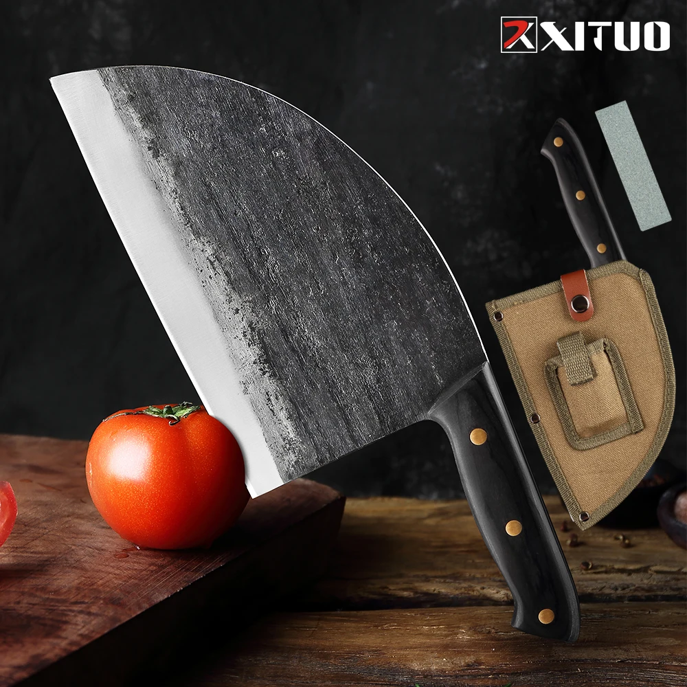 Custom Kitchen Knives Full Tang Serbian Knife Handmade Clad Forged Steel Chef Knife Cleaver Butcher Chinese Chopper