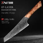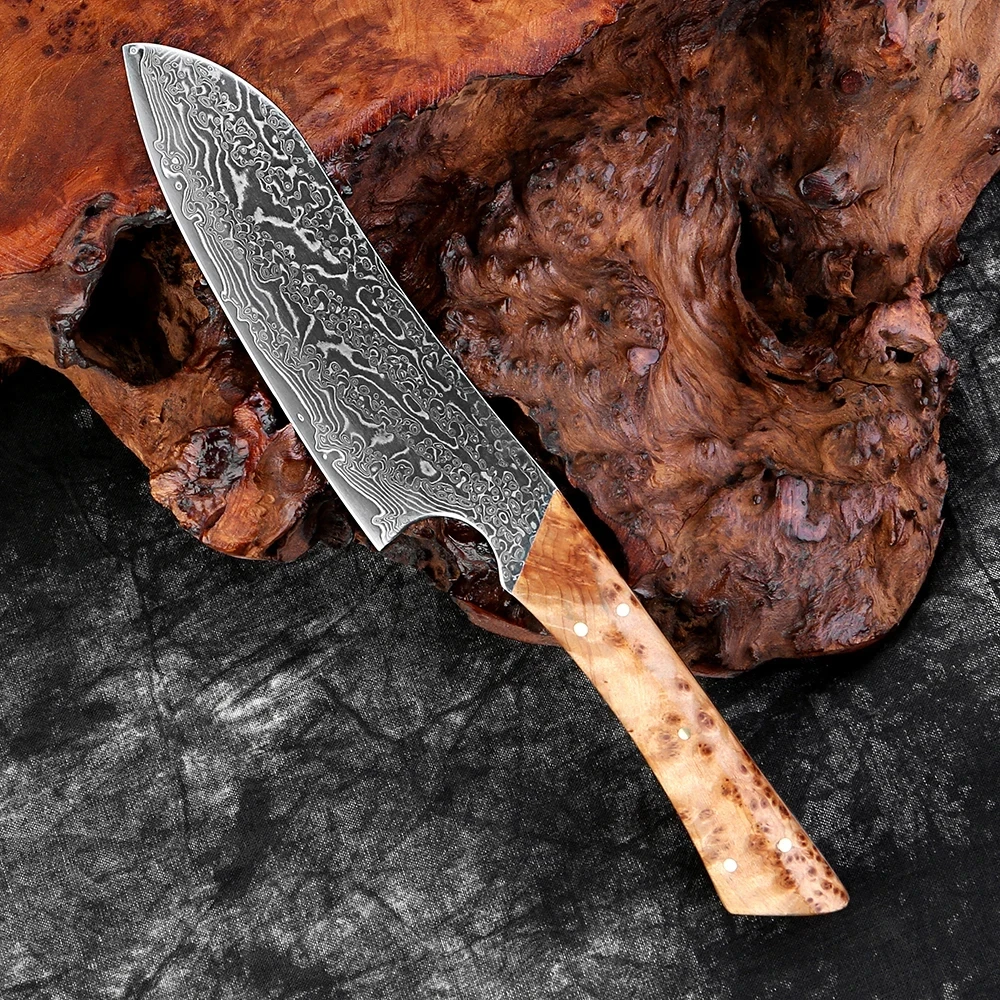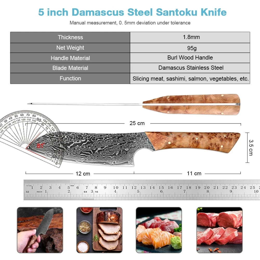 Damascus Steel 5-inch Santoku Knife Professional Japanese Chef’s Knife Full Tang Sushi Sashimi Knife Kitchen Cooking Accessories