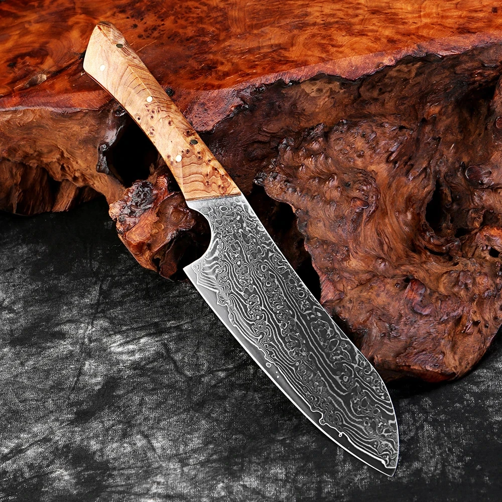 A: We specialize in the production of cost-effective knives, medium and high-end composite steel knives.Such as China 7Cr17Mov stainless steel laser pattern knives, hand-forged knives,Damascus composite steel knives, German steel 1.4116…The handles are made of natural wood such as color wood, G10, Micarta,Pakkawood,rosewood, wenge wood, and olive wood.