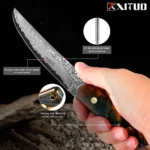 Our factory is a professional knife manufacturer with over ten years of extensive experience. We specialize in producing a wide range of high-quality knives, including Damascus steel knives, hand-forged high-carbon steel knives, and premium stainless steel kitchen knives. Our products incorporate a variety of premium handle materials, such as stabilized wood, resin, ebony, G10, carbon fiber, buffalo horn, and sheep horn, ensuring that each knife is both aesthetically pleasing and highly functional. Additionally, we offer accessories such as leather knife sheaths and nylon sheaths.