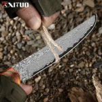 Our factory is a professional knife manufacturer with over ten years of extensive experience. We specialize in producing a wide range of high-quality knives, including Damascus steel knives, hand-forged high-carbon steel knives, and premium stainless steel kitchen knives. Our products incorporate a variety of premium handle materials, such as stabilized wood, resin, ebony, G10, carbon fiber, buffalo horn, and sheep horn, ensuring that each knife is both aesthetically pleasing and highly functional. Additionally, we offer accessories such as leather knife sheaths and nylon sheaths.