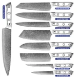 A: We specialize in the production of cost-effective knives, medium and high-end composite steel knives.Such as China 7Cr17Mov stainless steel laser pattern knives, hand-forged knives,Damascus composite steel knives, German steel 1.4116…The handles are made of natural wood such as color wood, G10, Micarta,Pakkawood,rosewood, wenge wood, and olive wood.