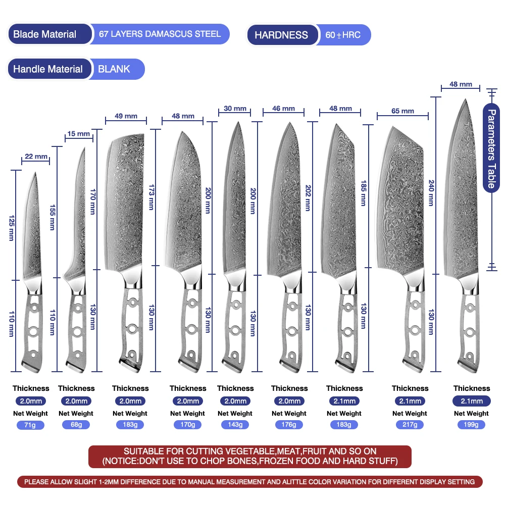 DIY Damascus Steel Knife Blank Blade 67 Layers Japanese VG10 Razor Sharp Kitchen Knife Multiple Personalisation Blade