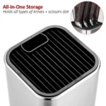 - [Universal Knives holder] 14 slots + 1 extra slot for sharpeners and kitchen scissors. Long knife up to 8.25′ cutters, such as kitchen knives, bread knives, utility knives, slicing knives, steak knives, etc.