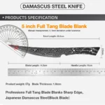 Hand Forged 67 Layer Damascus Japanese VG10 Steel Utility Knife Blank Razor Sharp Kitchen Knife Blank Untreated DIY Accessories