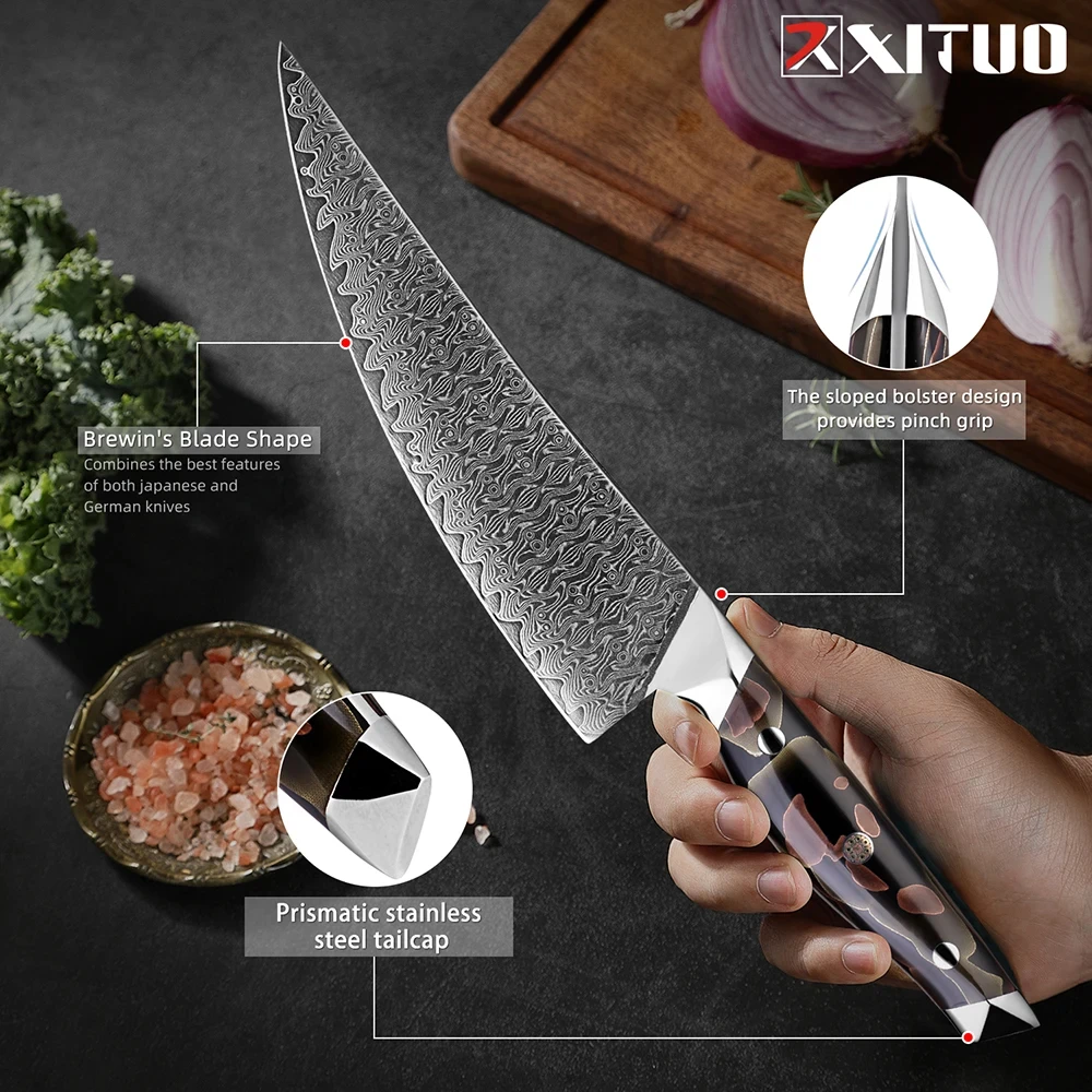 1-8pcs Damascus Steel Knife Set