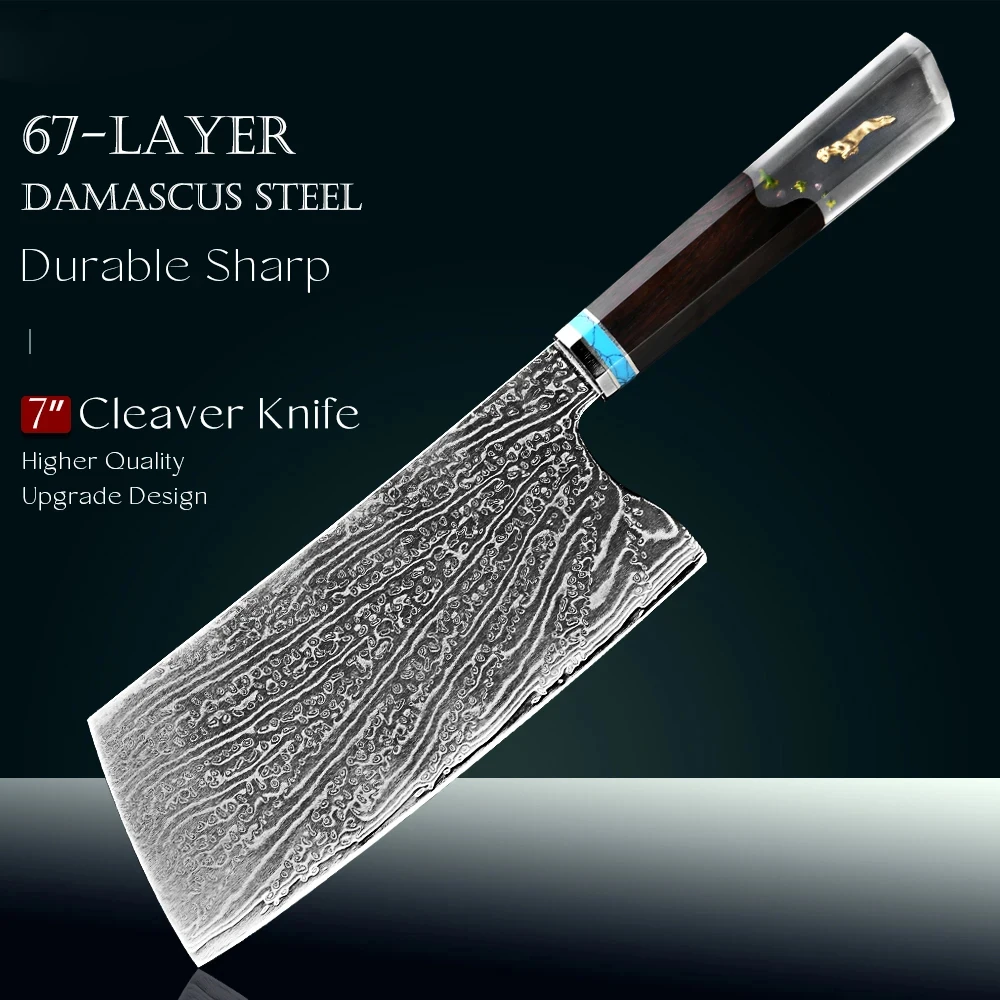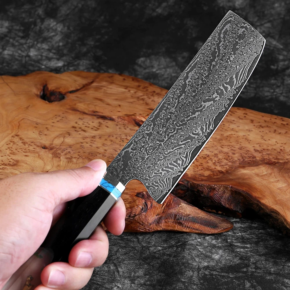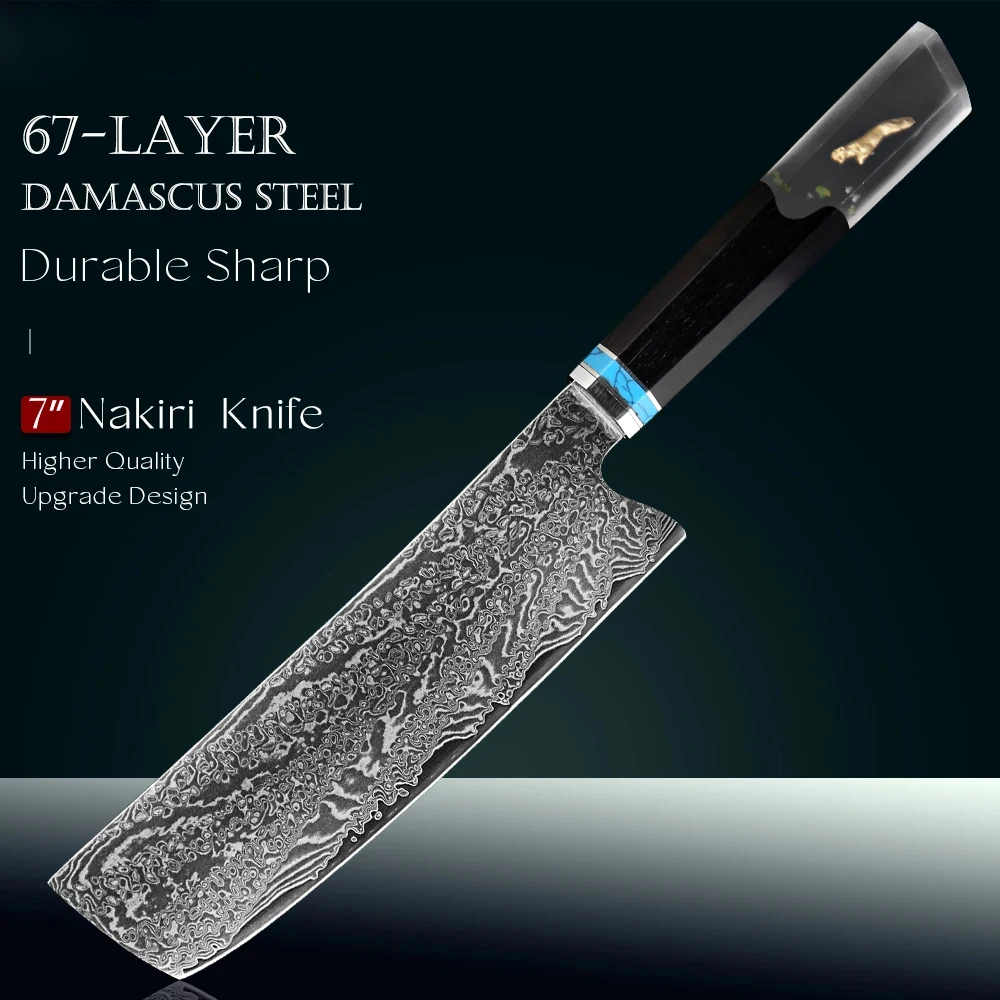 High-Hardness 67-Layer Damascus Steel Nakiri Knife Japanese VG10 Steel Sharp Chef’s Meat Slicing Knife Kitchen Cutting Tool