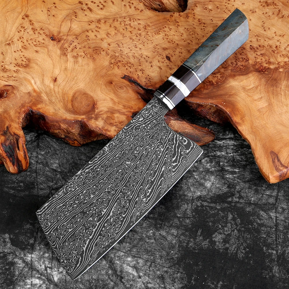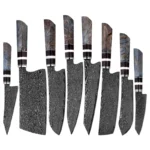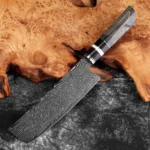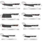 A: We specialize in the production of cost-effective knives, medium and high-end composite steel knives.Such as China 7Cr17Mov stainless steel laser pattern knives, hand-forged knives,Damascus composite steel knives, German steel 1.4116…The handles are made of natural wood such as color wood, G10, Micarta,Pakkawood,rosewood, wenge wood, and olive wood.