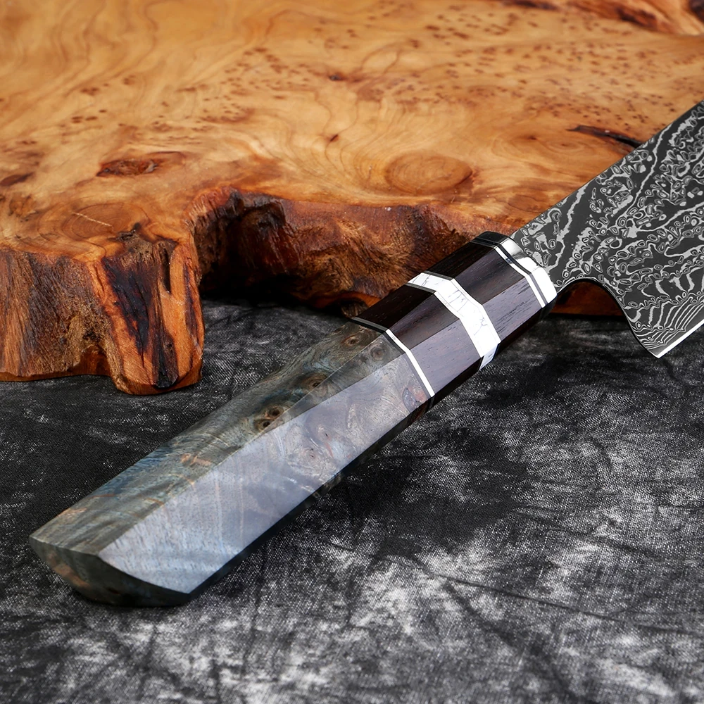 High-Quality 8-Inch Chef’s Knife 67-Layer Damascus Steel with VG-10 Core Kitchen Knife with Octagonal Stabilized Wood Handle