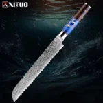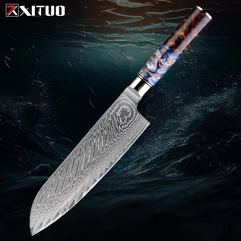 Japan Damascus Steel VG10 Steel Core Chef Knife Practical Vegetable Slicer Meat Knife Household Santoku Bread Serrated Knife New