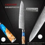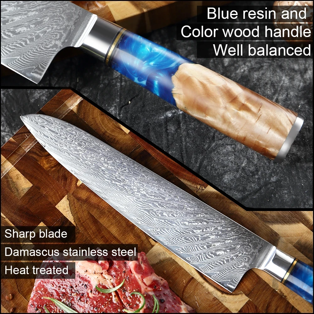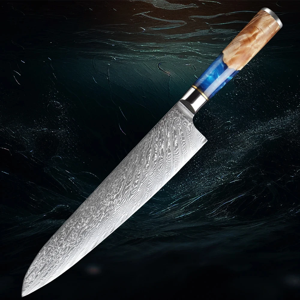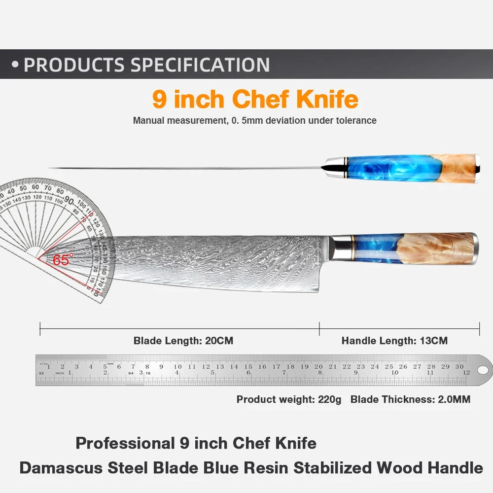 Japanese Chef Knife 9.5 Inch Damascus Kitchen Chef Knife VG10 Super Steel 67-Layer Damascus Knife Resin Stabilized Wood Handle