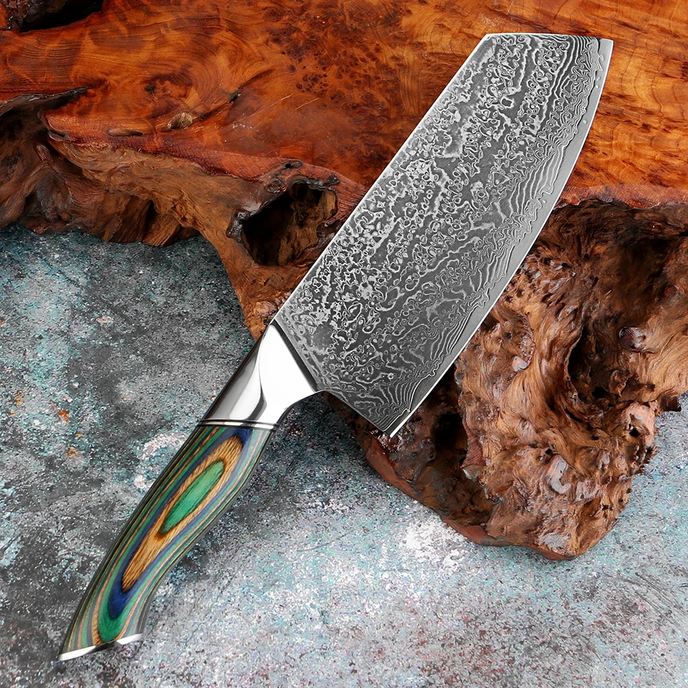 Japanese Damascus Steel Cleaver Knife VG10 Steel Core Chinese Chef Knife Vegetable Meat and Slicing Knife Colorful Wooden Handle