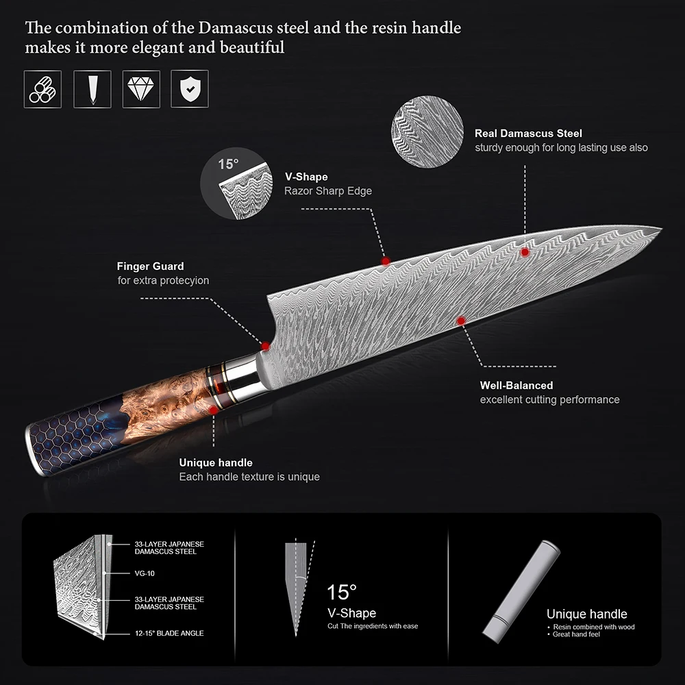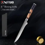 Our factory is a professional knife manufacturer with over ten years of extensive experience. We specialize in producing a wide range of high-quality knives, including Damascus steel knives, hand-forged high-carbon steel knives, and premium stainless steel kitchen knives. Our products incorporate a variety of premium handle materials, such as stabilized wood, resin, ebony, G10, carbon fiber, buffalo horn, and sheep horn, ensuring that each knife is both aesthetically pleasing and highly functional. Additionally, we offer accessories such as leather knife sheaths and nylon sheaths.