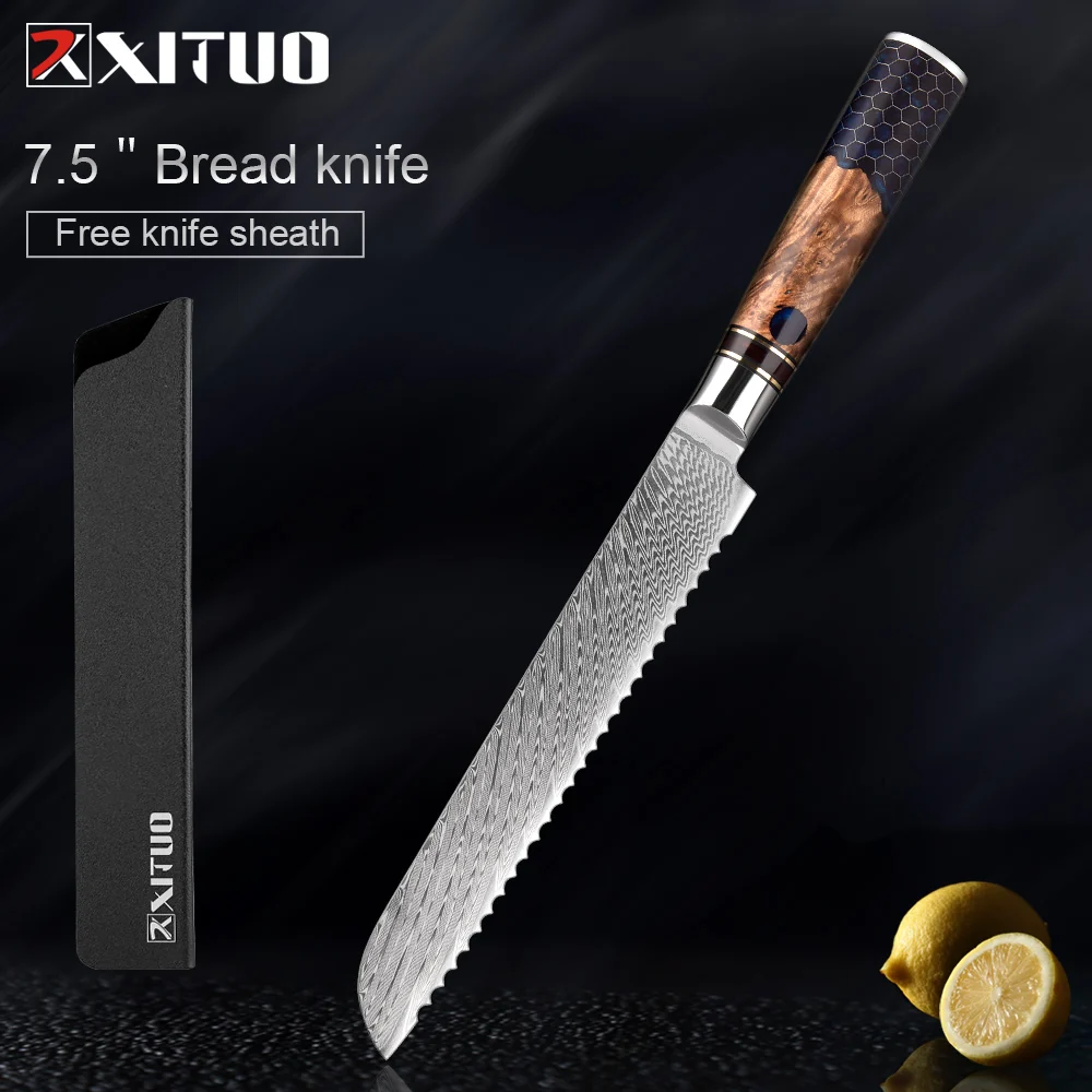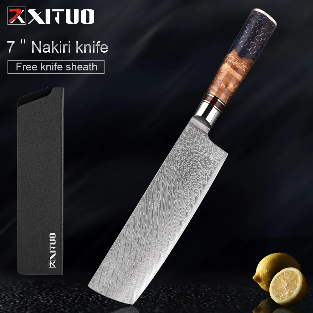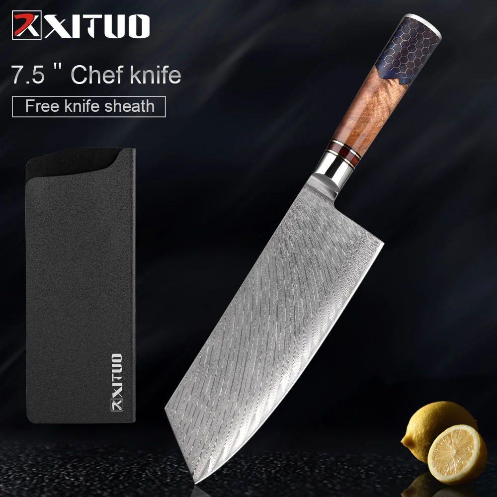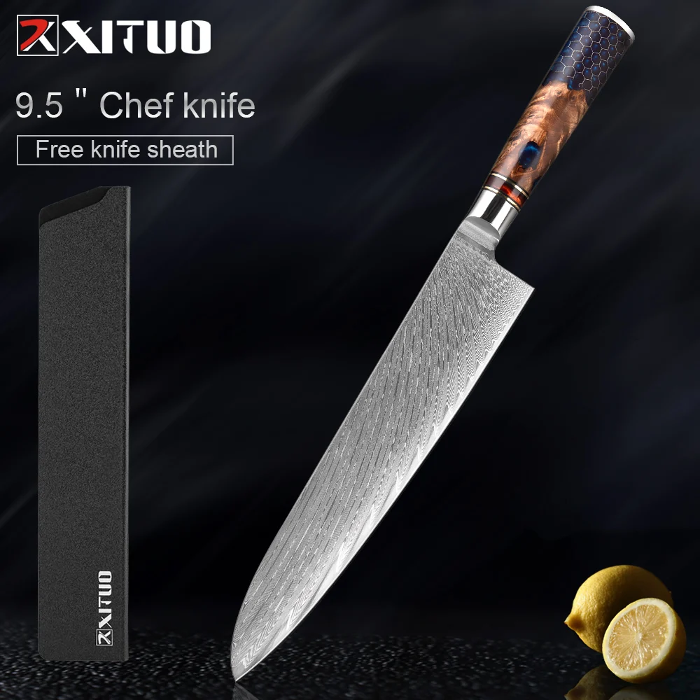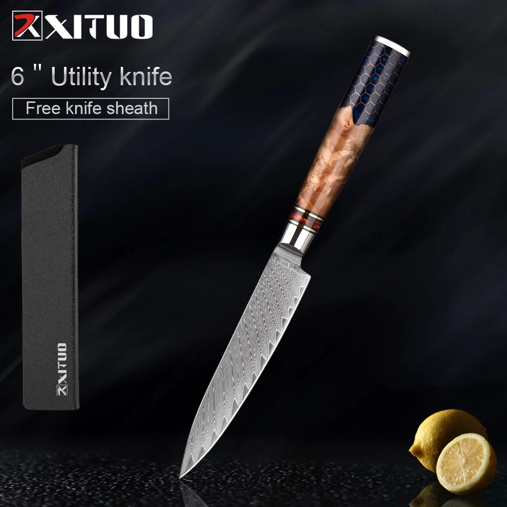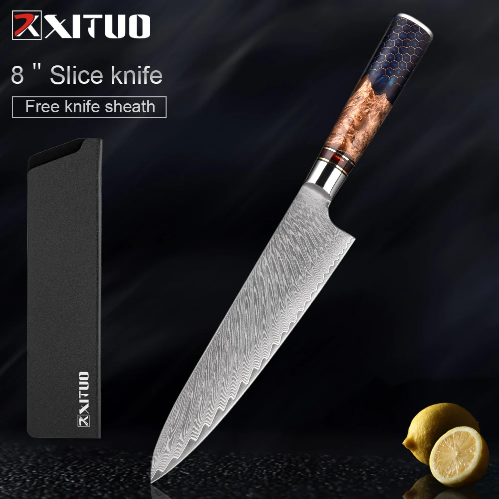 Kitchen Knives Set 67 Layer Damascus Steel Chef Knife Sharp Cut Meat Vegetables Kitchen Utility Blue Resin Handle 1-9 PCS