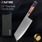 A: We specialize in the production of cost-effective knives, medium and high-end composite steel knives.Such as China 7Cr17Mov stainless steel laser pattern knives, hand-forged knives,Damascus composite steel knives, German steel 1.4116…The handles are made of natural wood such as color wood, G10, Micarta,Pakkawood,rosewood, wenge wood, and olive wood.
