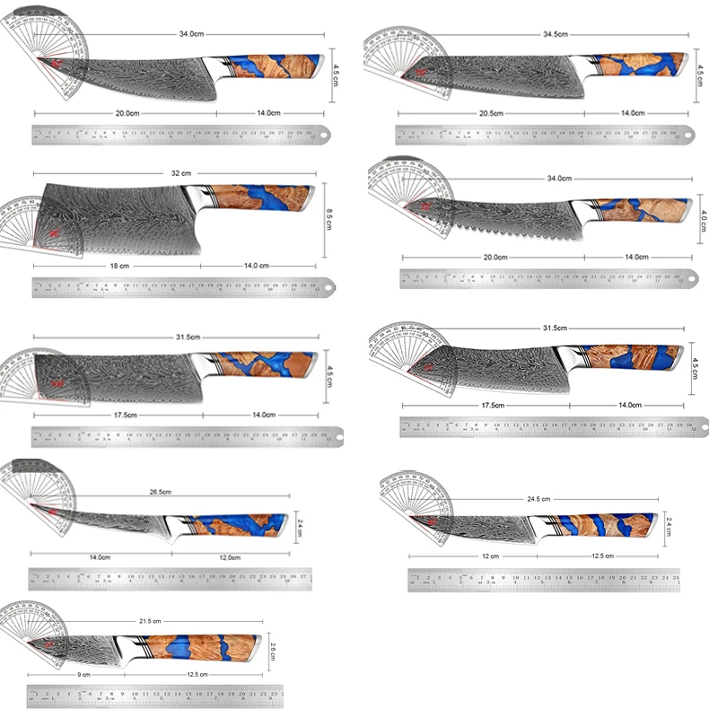 Our factory is a professional knife manufacturer with over ten years of extensive experience. We specialize in producing a wide range of high-quality knives, including Damascus steel knives, hand-forged high-carbon steel knives, and premium stainless steel kitchen knives. Our products incorporate a variety of premium handle materials, such as stabilized wood, resin, ebony, G10, carbon fiber, buffalo horn, and sheep horn, ensuring that each knife is both aesthetically pleasing and highly functional. Additionally, we offer accessories such as leather knife sheaths and nylon sheaths.
