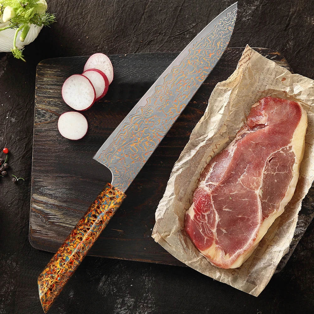New 73-ply Two-color Copper Damascus Steel Kitchen Knife China Japan Traditional Lacquered Handle Sharp Slicing Meat Fish Knife