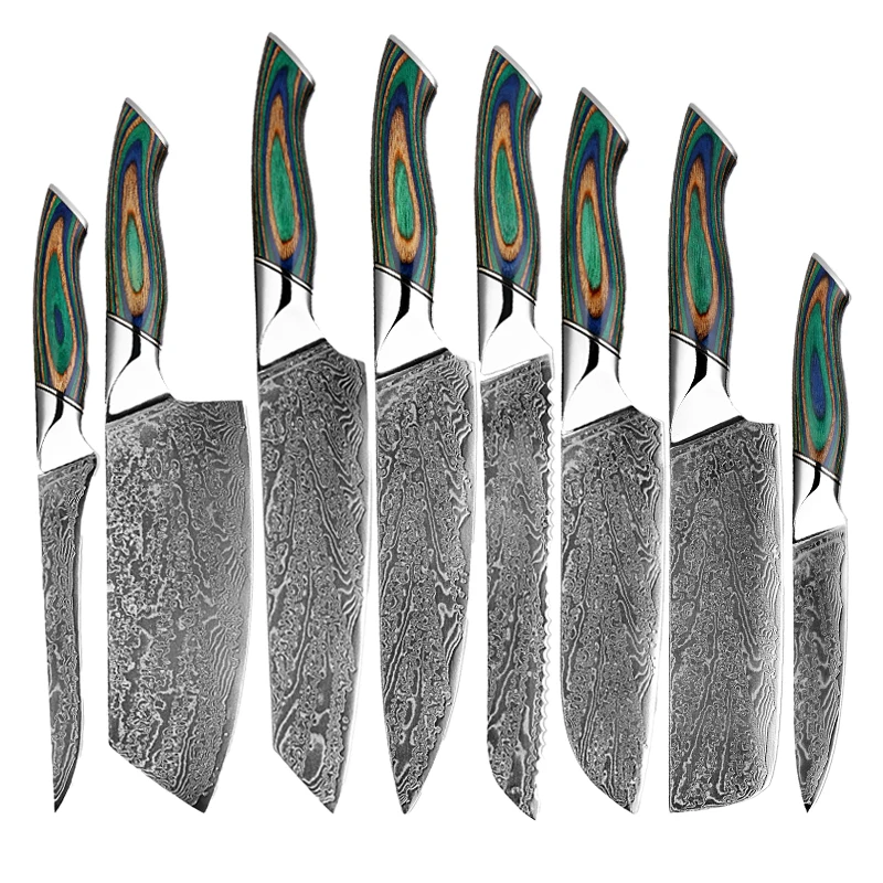 A: We specialize in the production of cost-effective knives, medium and high-end composite steel knives.Such as China 7Cr17Mov stainless steel laser pattern knives, hand-forged knives,Damascus composite steel knives, German steel 1.4116…The handles are made of natural wood such as color wood, G10, Micarta,Pakkawood,rosewood, wenge wood, and olive wood.
