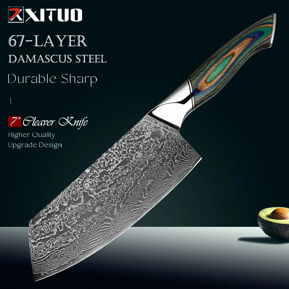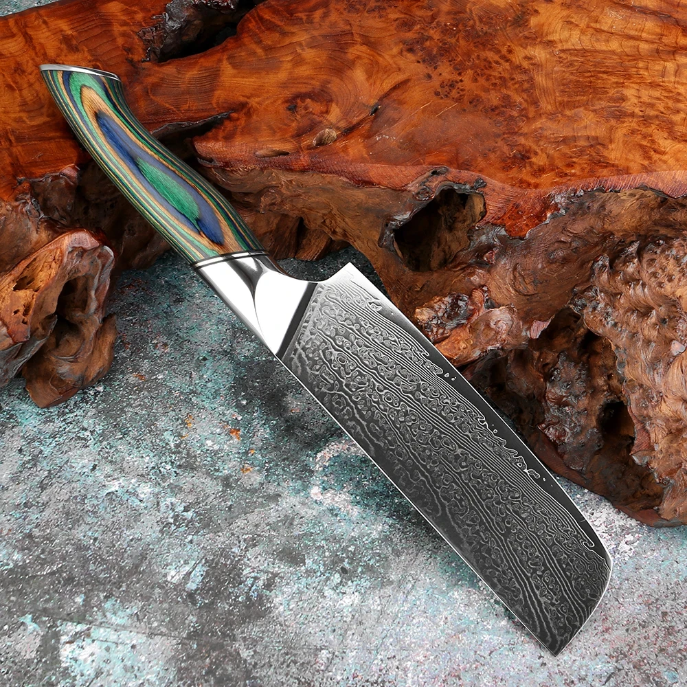 Premium Damascus Steel Nakiri Knife Hand-Forged Japanese Chef Knife Hotel Restaurant & Home Cooking Knife Colored Wood Handle