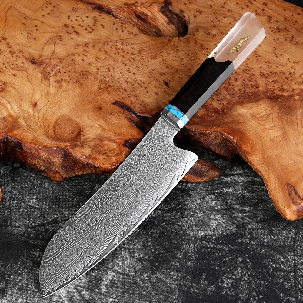 Professional Damascus Santoku Knife Sharp Multi-Purpose Vegetable & Meat Cutting Knife Premium Japanese Chef Knife for Home Use