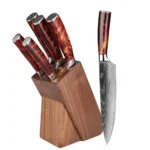 A: We specialize in the production of cost-effective knives, medium and high-end composite steel knives.Such as China 7Cr17Mov stainless steel laser pattern knives, hand-forged knives,Damascus composite steel knives, German steel 1.4116…The handles are made of natural wood such as color wood, G10, Micarta,Pakkawood,rosewood, wenge wood, and olive wood.