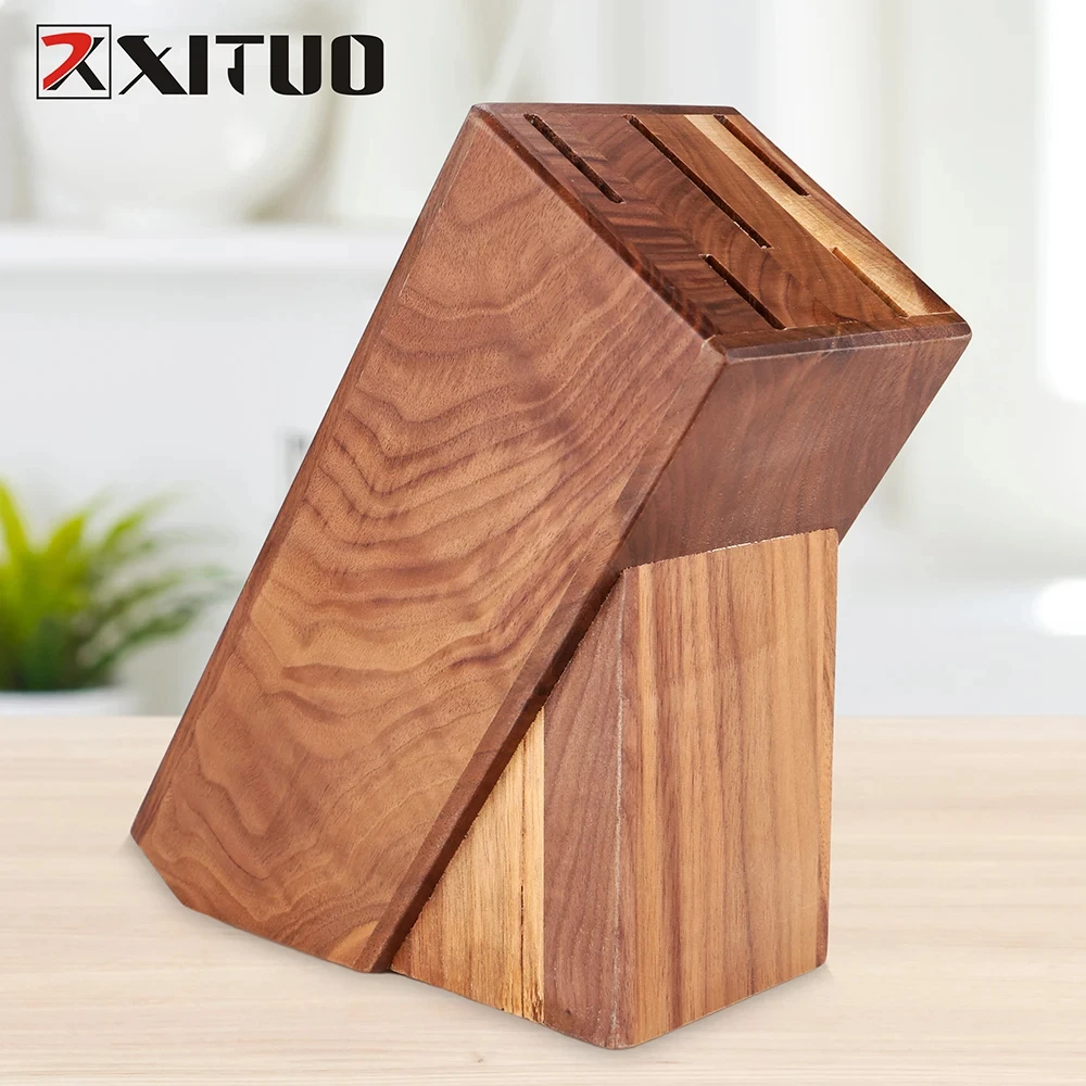 Wooden Knife Holder Standing Block for Kitchen New Design Walnut Wood Knife Block Holder Storage 5pc Knife Set Stand Accessories