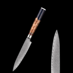 - Acier Damas 67 couches : Lame ultra-tranchante et résistante à la corrosion pour une coupe nette et fluide.