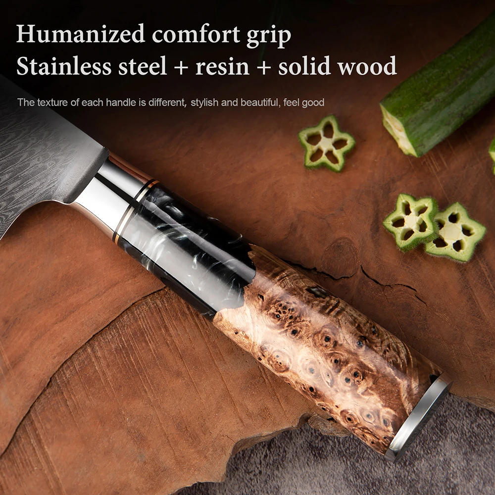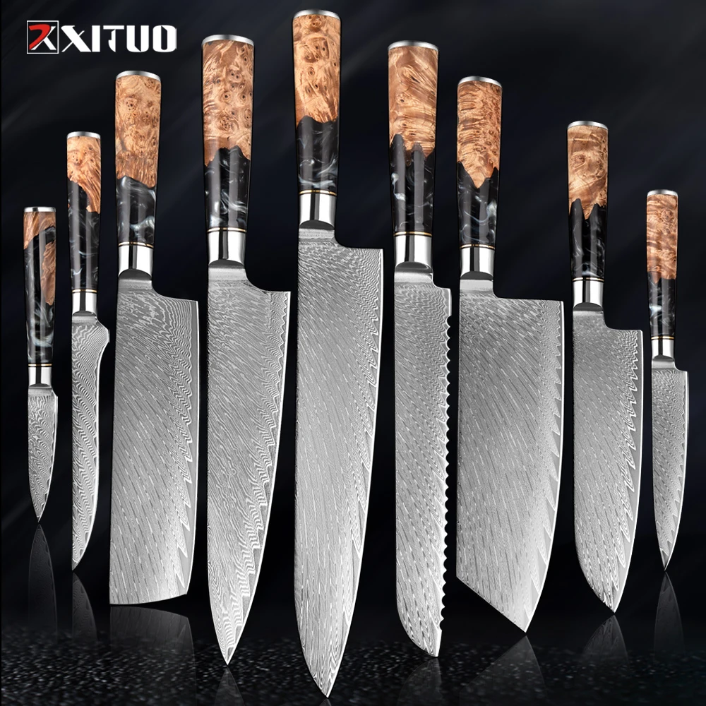XITUO 1-9 Pieces Damascus Steel Kitchen Knives Set Sharp Chef Knife Black Resin Handle Kitchen Utility Cutting Tools