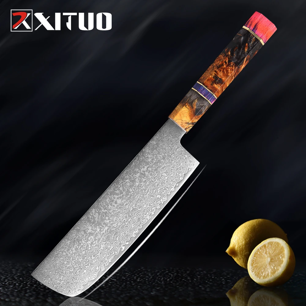 XITUO 2-5 Piece Set Nakiri Knife Japanese Damascus Steel Wooden Handle Damascus Kitchen Knife Factory Wholesale