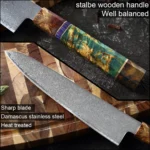 A: We specialize in the production of cost-effective knives, medium and high-end composite steel knives.Such as China 7Cr17Mov stainless steel laser pattern knives, hand-forged knives,Damascus composite steel knives, German steel 1.4116…The handles are made of natural wood such as color wood, G10, Micarta,Pakkawood,rosewood, wenge wood, and olive wood.