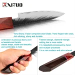 XITUO 3.5 Inch Paring Knife Handmade Forged Three-layer Clad Steel Kitchen Chef Knife Cooking Accessories Santoku Utility Knife