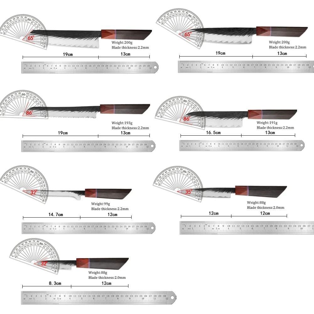 A: We specialize in the production of cost-effective knives, medium and high-end composite steel knives.Such as China 7Cr17Mov stainless steel laser pattern knives, hand-forged knives,Damascus composite steel knives, German steel 1.4116…The handles are made of natural wood such as color wood, G10, Micarta,Pakkawood,rosewood, wenge wood, and olive wood.