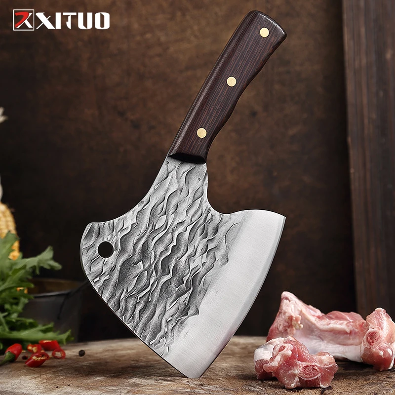 XITUO 5Cr15MoV Stainless Steel Kitchen Knife Cut Meat Fish Ribs Chop Chicken Kitchen Multifunction Utility Knife Natural Wenge