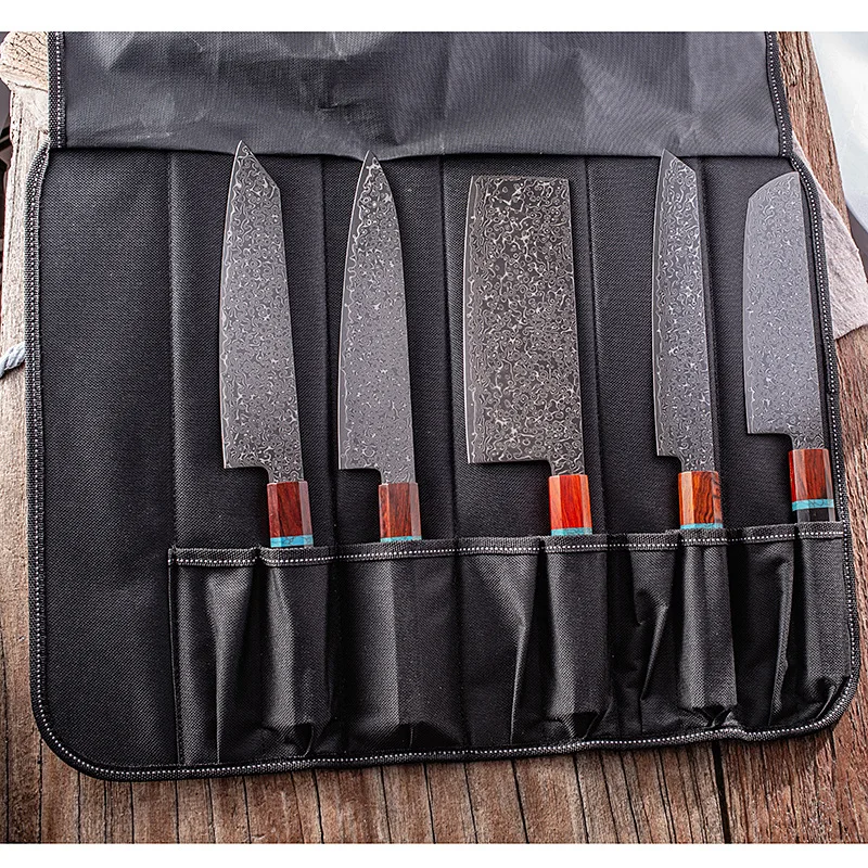 XITUO 5PCS Kitchen Knife Set Organizer Oxford Cloth Rolled Portable Handheld Knife Bag Professional Chef Knife Bag Storage Tool