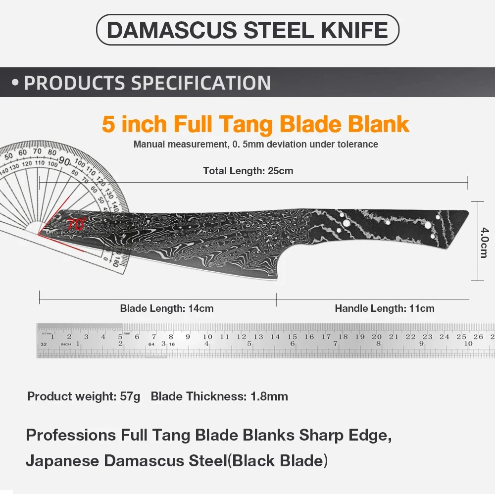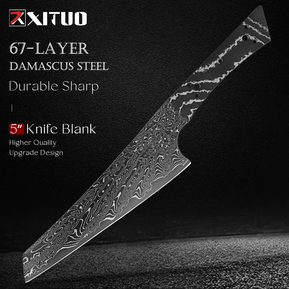 XITUO 67 Layer Damascus Steel Kiritsuke Knife Blank Heat Treated Sharp Japanese Chef Knife Black Blank DIY Handle Handmade Knife