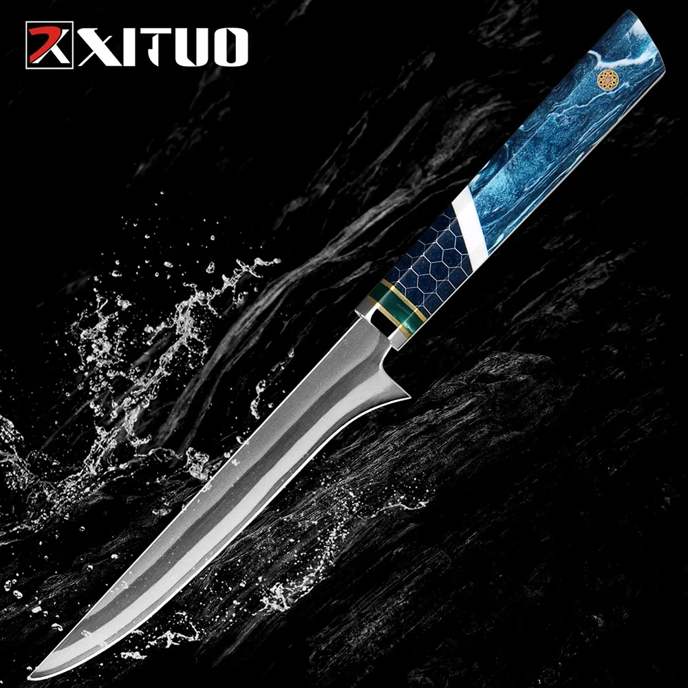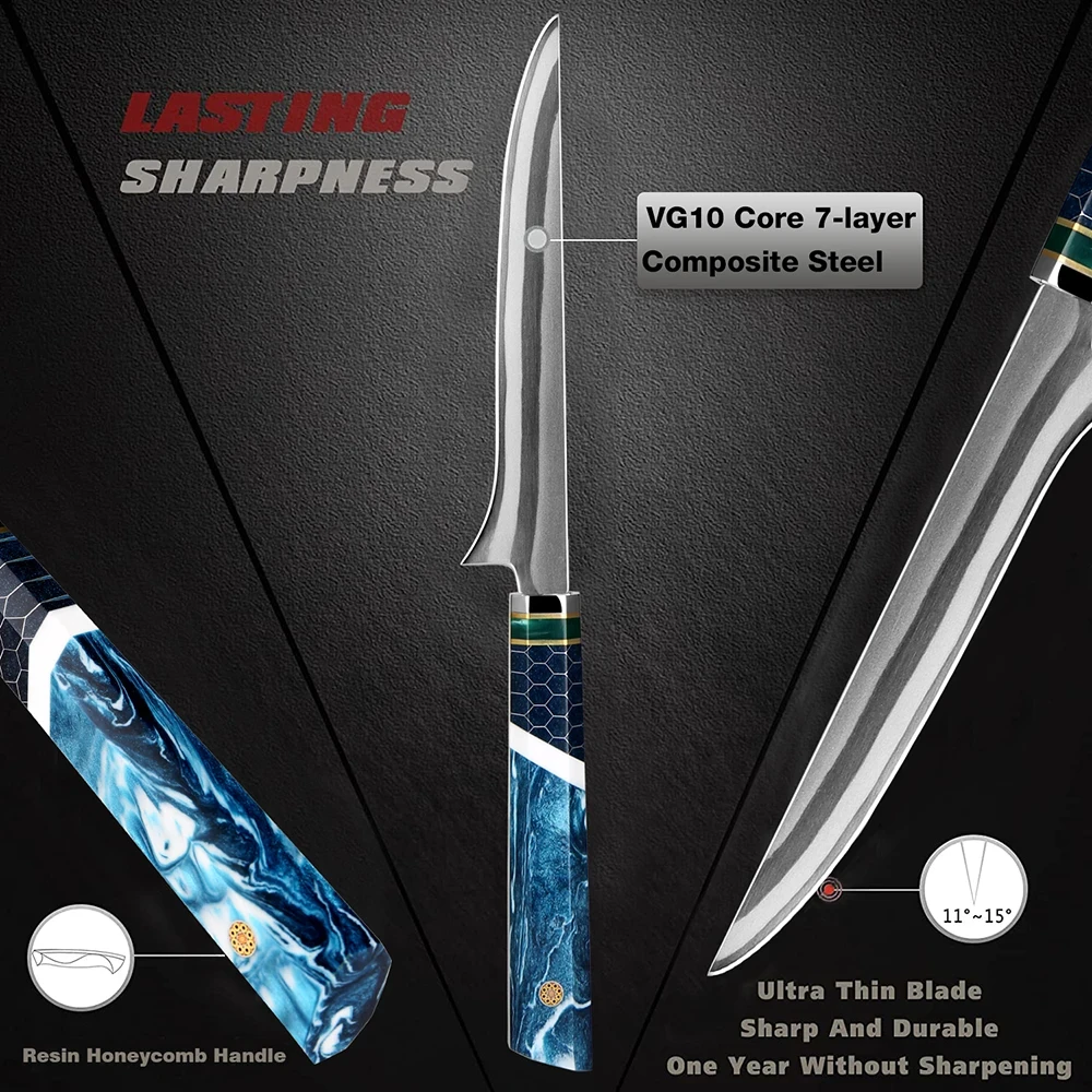 XITUO 7Layer Composite 440C Steel Boning Knife Professional Grade Boning Fillet Knife 6-Inch Boning Knife Resin Honeycomb Handle