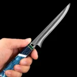 Our factory is a professional knife manufacturer with over ten years of extensive experience. We specialize in producing a wide range of high-quality knives, including Damascus steel knives, hand-forged high-carbon steel knives, and premium stainless steel kitchen knives. Our products incorporate a variety of premium handle materials, such as stabilized wood, resin, ebony, G10, carbon fiber, buffalo horn, and sheep horn, ensuring that each knife is both aesthetically pleasing and highly functional. Additionally, we offer accessories such as leather knife sheaths and nylon sheaths.