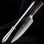 2. Cet ensemble comprend-il un aiguiseur ? Oui, l’ensemble comprend un couteau chef de 8 pouces et un aiguiseur pour maintenir votre couteau tranchant.