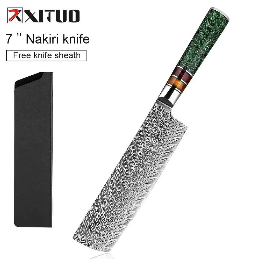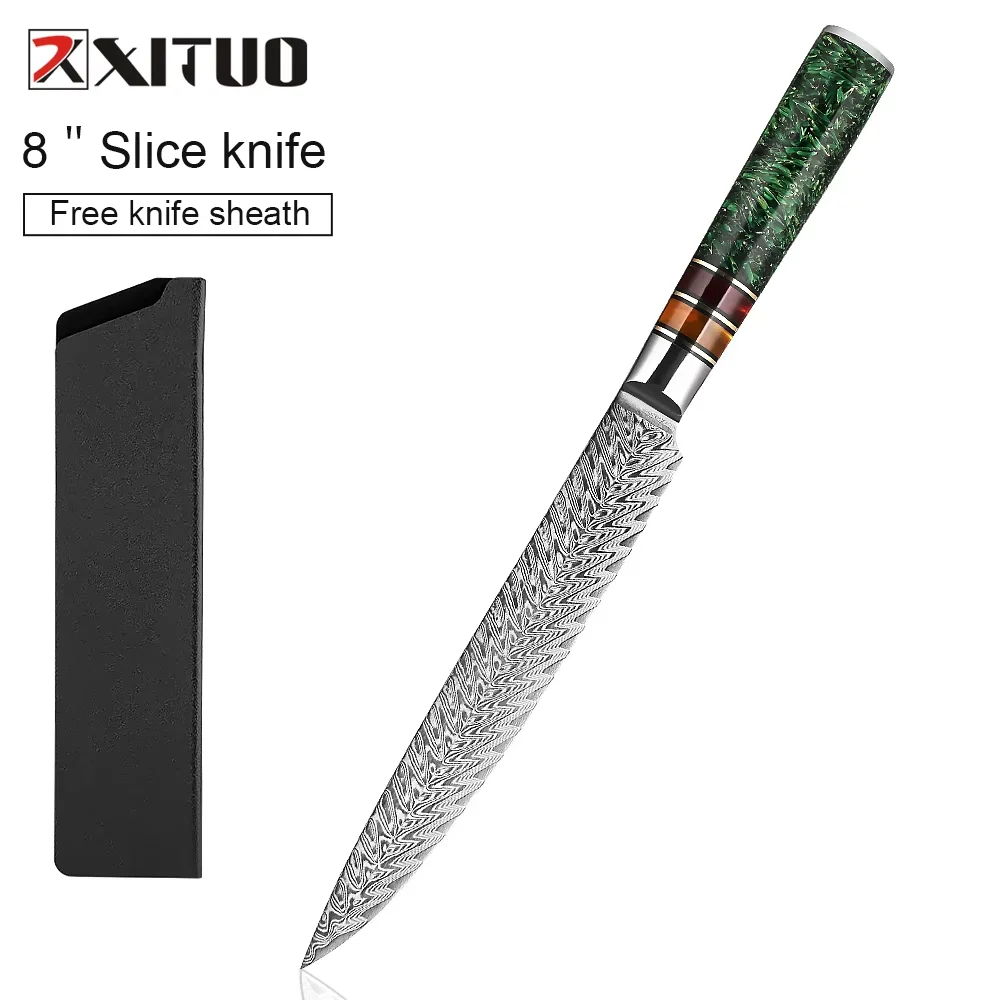 XITUO 8″ Professional Kitchen Chef Knife Sharp Cleaver Damascus Stainless Steel Cutting Vegetable Tools Grain Shell Resin Handle